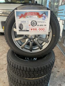この時期そろそろスタッドレスタイヤの交換のタイミングかと思いますが軽自動車のスタッドレス国産アルミセット66000円で販売しております🎄